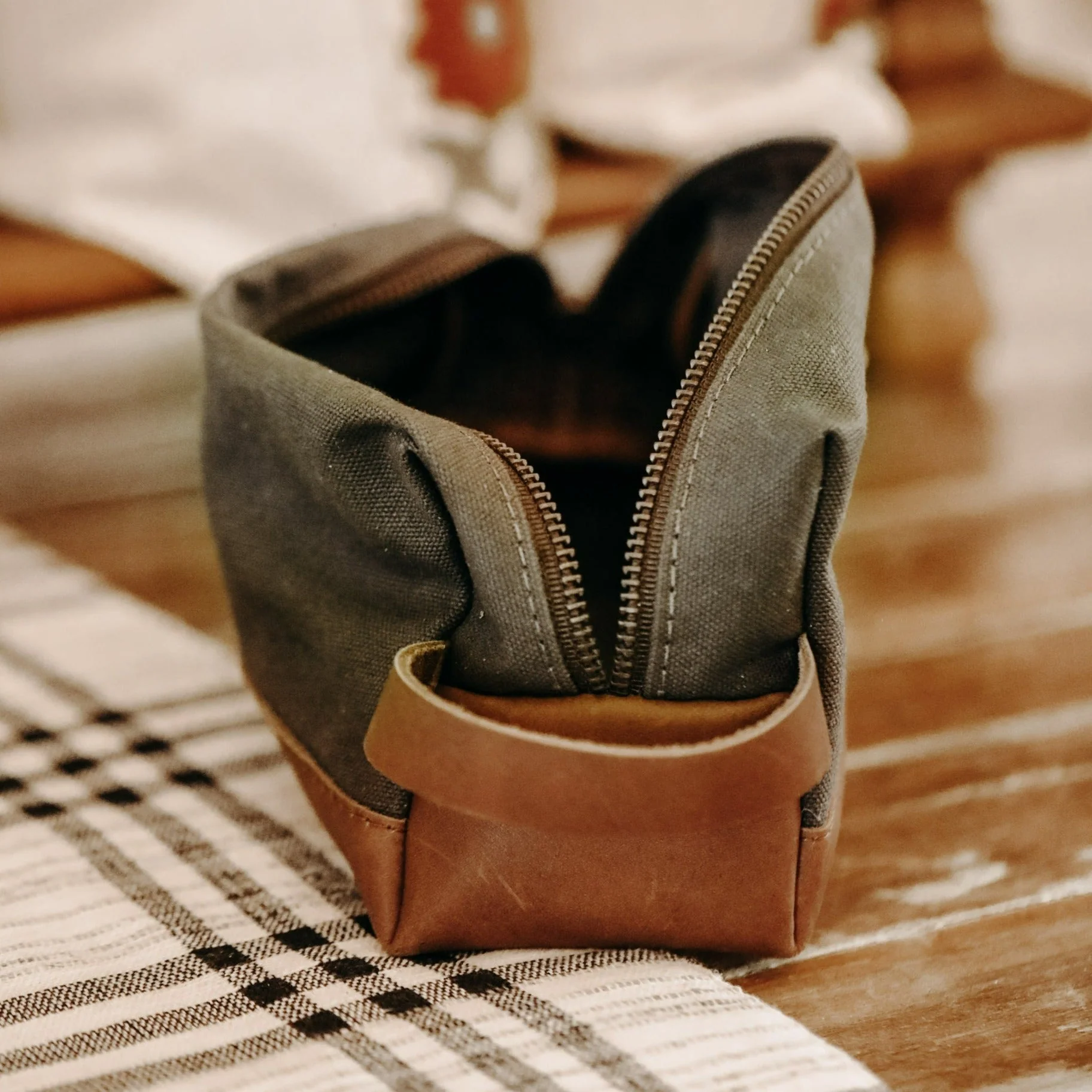 Give a gift they will remember forever. The canvas and leather dopp kit comes with an easy to carry handle, high-quality zipper, and our embossed 80 Acre area code detail.Â