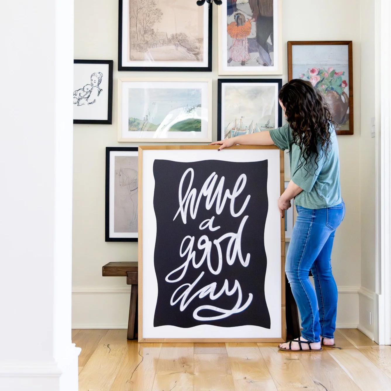 Make every day a masterpiece with our "Have a Good Day" sign! Whether you choose our over sized frame option or the 20 x 30, this versatile design is guaranteed to elevate any space. High-resolution prints on ultra-thick canvas embossed material. Handcrafted with natural wood making each frame its own masterpiece with unique color tones and variations. Framed in a beautiful almond frame, this piece comes ready to hang.